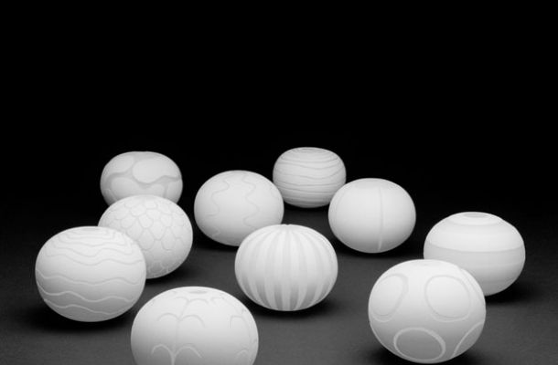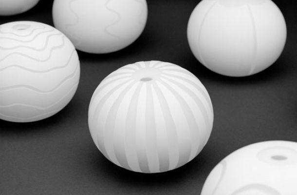 Vita klot med sandblästrade mönster